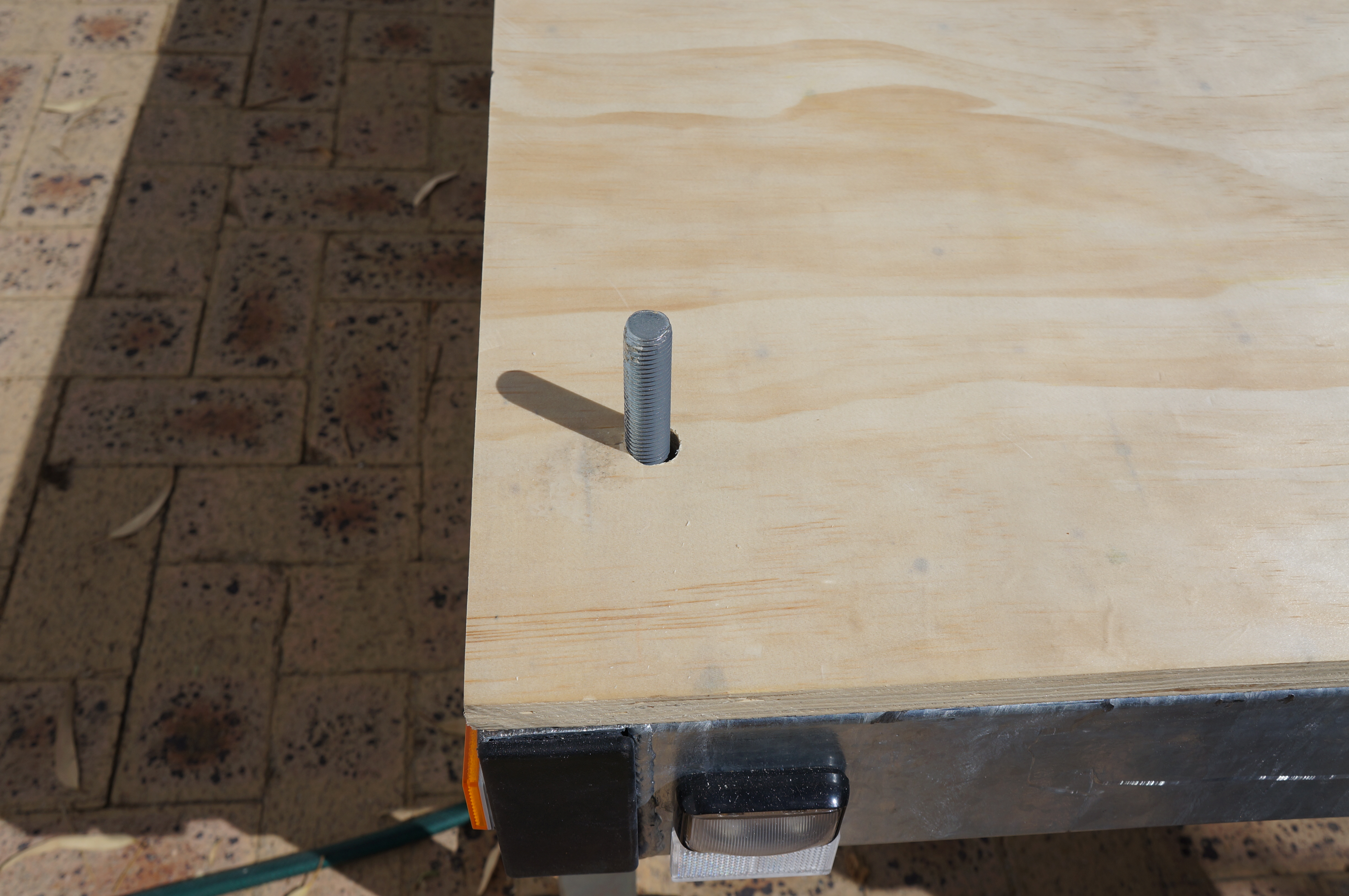 - Threaded studs that are welded to the trailer that stick through the bottoms of the walls and are then fitted with large washers and nuts and tightened